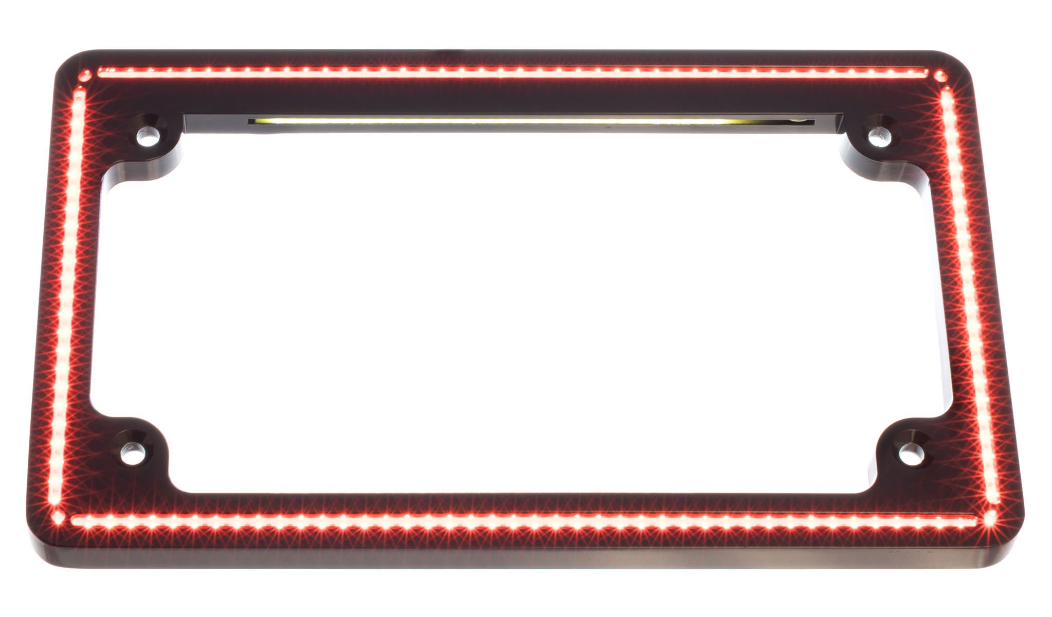 Perfect Plate Light™ License Plate Frame, Gloss Black, features running light, brake light, license plate light and Switchback turn signals, 100% Plug-n-Play fits: (2018-UP Softail). (Includes mounting hardware.)